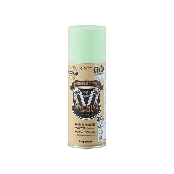 カンペハピオ マットペイントスプレー アイスミント 300ml カンペハピオ ハピオセレクト 塗料 ペンキ 水性塗料 油性塗料 鉄部 木部 多用途 屋内 屋外 兼用 樹脂 DIY 防カビ プラスチック コンクリート ブロック