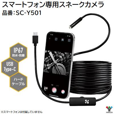 スマートフォンスネークカメラ品番:SC−Y501★Type−Cのスマートフォン専用★約300万画素★明るさ無段階調整 0−24Lm★防水・防塵 IP67★ハードケーブル5m★豊富なアタッチメント山善(YAMAZEN)