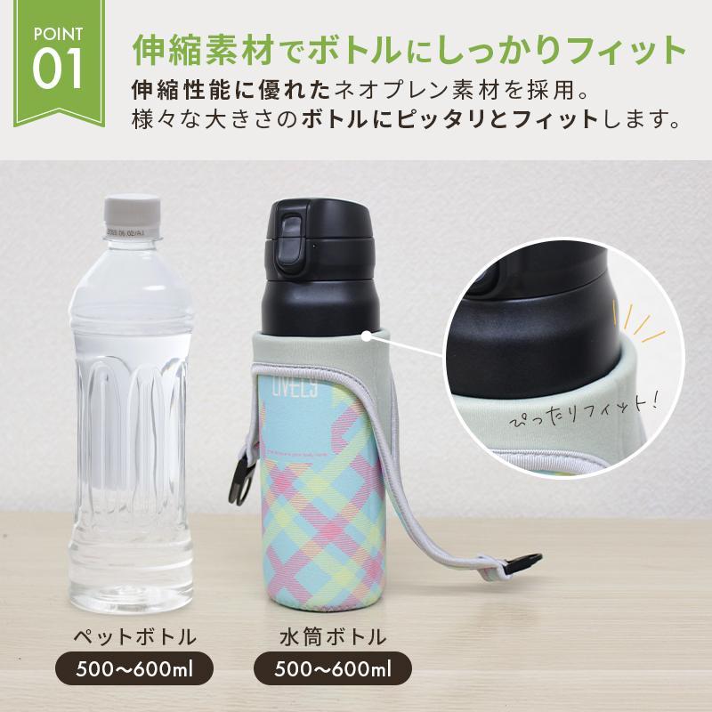 伸縮性の高い素材なので350ml〜600mlまでのペットボトル、水筒にピッタリフィット♪