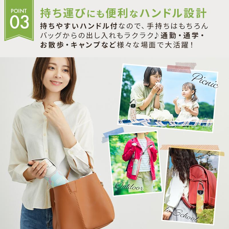 手提げ部分を持ってそのまま持ち運んでもOK。付属のストラップを付けて肩掛での持ち運びも可能!