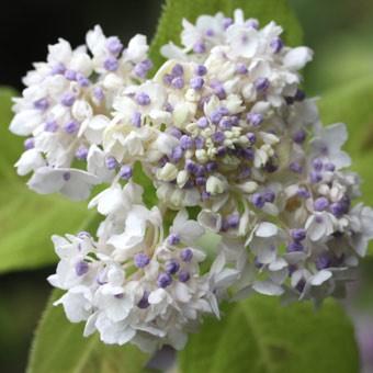 玉アジサイは、大きな丸いつぼみが開くと、くす玉がはじける様に両性花と装飾花が現れるユニークなアジサイの仲間です。つぼみから花が終わるまでの移り変わりも楽しめます。本州の福島以南〜中部地方の山地の沢沿いや、林縁に生える落葉低木です。テマリタマアジサイは、装飾花が手毬状に咲き、豪華な印象のタマアジサイです。