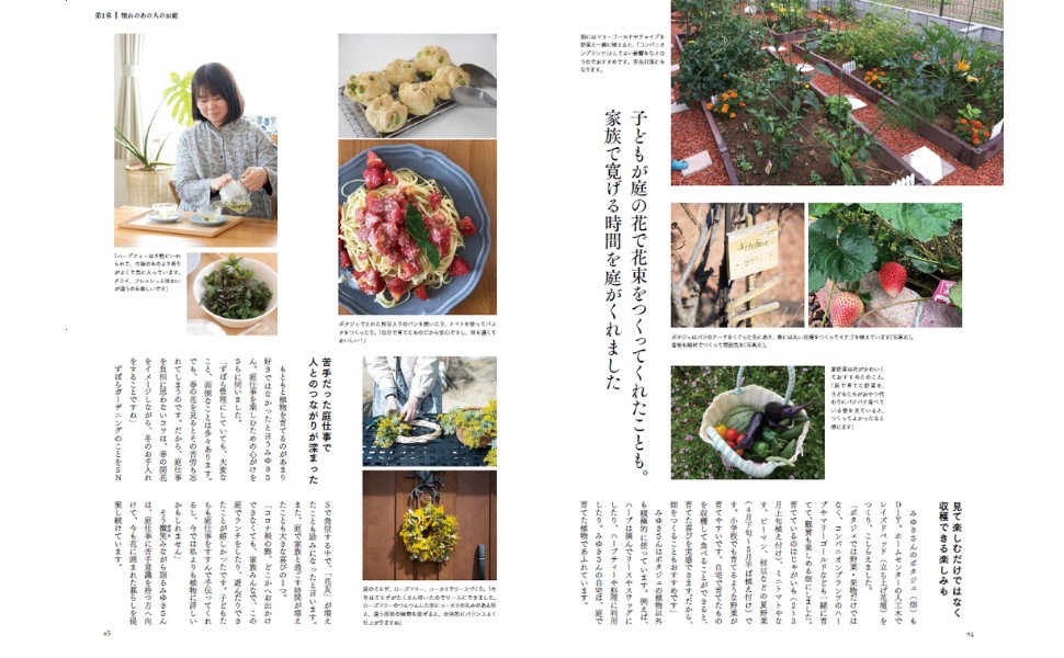 毎日お手入れしなくても大丈夫!心も整う憧れの庭のつくりかた一年を通して色とりどりの花や緑に囲まれた庭。風景を眺めて四季を感じながら、ちょっとお茶する贅沢な時間。たとえ小さくても、自然の恵みとともに暮らす日々。「庭をつくりたい!」「一度挫折してしまった……」本誌はそんな庭づくりビギナーさんに向けて、「毎日お手入れをしなくても美しい庭を保つ秘訣」をまとめました。巻頭ではガーデナーの戸倉多未子さんに、庭づくりの一歩目の踏み出し方と、緑あふれる庭にするための工夫を教えてもらいました。1章では素敵な庭づくりを楽しむ7名の方の庭づくりをご紹介しています。また、2章ではいつまでも憧れの「バラ」をメインに庭づくりを楽しむ7名の方へ取材。バラのある庭づくりのコツをお伺いしました。小さな場所でも、毎日お世話しなくても、ずっと美しい庭づくりを楽しみましょう!【CONTENTS】巻頭グレイスオブガーデン代表の戸倉多未子さんに聞く小さくても、あまり世話をしなくても 緑あふれる庭を手がけるためのちょっとした工夫第1章憧れのあの人のお庭“ずぼら”な私でも叶えられた 花や緑に囲まれて充実した暮らしガーデンコーディネーター・グリーンアドバイザー/みゆきさん湘南・逗子の自然に抱かれて 食べられる植物が育つ庭料理家/中川たまさん土に触れ、草花の声に耳をすます 庭づくりがくれる穏やかな時間摘季(つみき)フローリスト/脇田ひかるさん10坪の庭を最上の癒やし空間に 目指すのはありのままの自然ブロガー・インスタグラマー/40karaさんルーフバルコニーに広がる秘密の花園で 大好きな世界観を極めるインスタグラマー/Rikaさん そよぐ緑のささやきに誘われて 階段庭に下りるひとときが幸せガーデンライター/橋本景子さん「好き」と「つくる」を追求したら 生まれた自分だけの心地よい庭動画クリエイター/庭づくり大好きおじさんさん第2章バラの魅力にあふれるお庭美しいバラと雑貨にこだわり目指したのは「かわいい庭」/のばら*nobara*さんローメンテナンスでも一年を通して見どころが続く庭づくり/keikoroseさん庭づくりのプロが仕立てるバラのある“風景スポット”/ウッドチップスさんつるとバラと草花で描く立体的で奥行きのある庭/tearoseさん海外風住宅に合わせた庭で絵本の中のような風景に/りょうさん雑木とグリーン中心の庭を小輪のバラで表情豊かに/mikaさん家族でDIYするガーデンはバラでいっそう世界観を深める/yushiさんColumn 小さなスペースでも庭づくりは楽しめる!ベランダガーデニングのコツColumn 花が枯れたり病気になったり……! 庭づくりの失敗談更新日:2025年04月22日