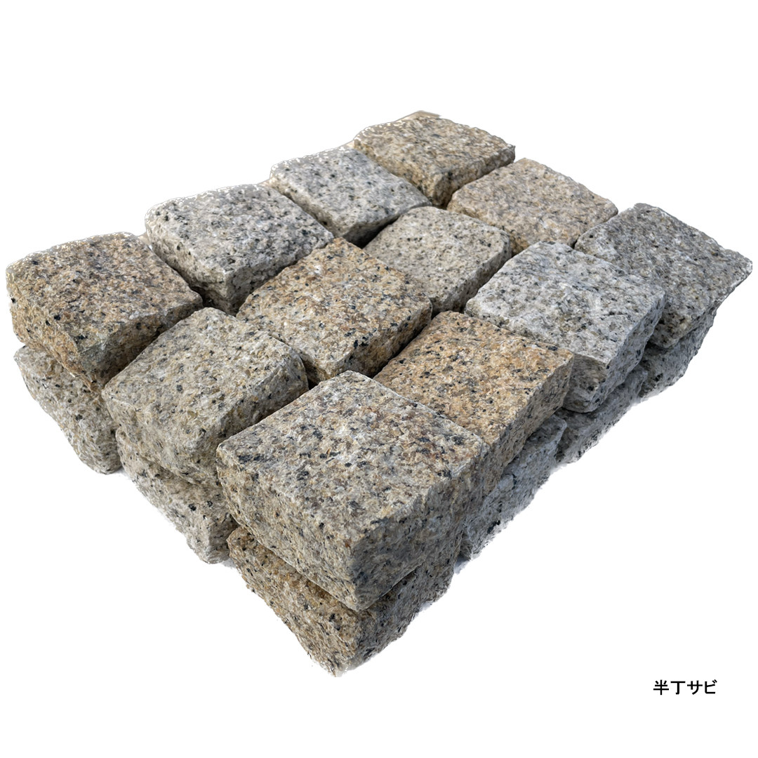 庭づくりや花壇の縁取り、アプローチの敷石に人気のピンコロ石 半丁サイズ。