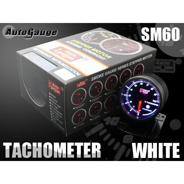 オートゲージ タコメーター SM 60Φ ホワイトLED ワーニング 回転数 マニュアル 5MT 86 ワークス 軽トラ オーバーレブ 即納 送料無料