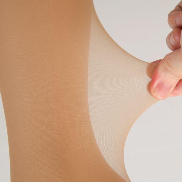 ノーサポートタイプのパンティストッキングです。大きいサイズのみの展開で、3足組になっています。一足ずつ個装されているので、かばんの中でもかさばらず、急な伝線や穴あきに対応できそうです。