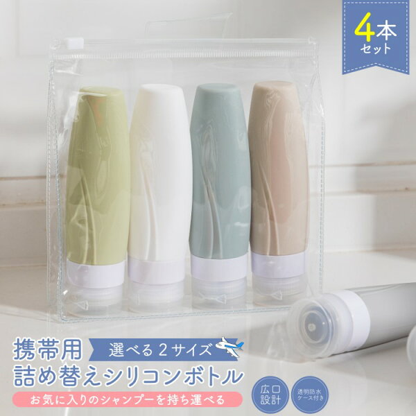 | 商品説明 | 【便利な詰め替えボトルセット】散かりがちなスーツケースを何とかしてみませんか? こちらの詰め替えボトルセットは、約1週間分のシャンプーを収納できて快適な旅には欠かせないおすすめグッズです。 高級感のある透明なポーチ付き、4本セットのシリコン製詰め替えボトル、内容物表示のラベルも付いており、様々なニーズに対応できます。【漏れ防止と大開口設計】密閉構造の蓋で漏れ防止設計となっており、中身の漏れやこぼれを防止しより安心してお使いいただけます。22mm幅の開口部設計により、詰め替えの際に内容物を入れやすく作業がらくらく!そして、キャップの取り外しも簡単で、中身の入れ替えの際にもきれいに掃除することができて使いきった後の清掃も簡単でストレスフリーです。【機内持ち込み可能】旅先でもいつものスキンケアなどを行いたい方におすすめ!詰め替えボトルセットは、機内持ち込みが可能なサイズで、いつもの愛用品を便利なボトルに入れて持ち運びが便利です。旅行の際になるべく荷物を減らしたいけど、最低限の必需品はこちらのボトルに必要な分だけ詰め替えし、無駄な荷物が増えず気分も楽になります。【おしゃれなデザインで耐久性も良い】男女問わずどなたにも使いやすいシンプルかつオシャレなデザインを開発しました。いつものバッグに入れても違和感なく溶け込めます。なお、このトラベルセットには有害なBPA成分を含まず、高品質シリコンを使用した安心安全な素材を採用しております。シャンプー、リンス、クリーム、日焼け止め、コンディショナー、乳液など様々な液体を収納できます。【貼付可能な内容品ラベル付属】ボトルの白い中央には空白の箇所があり、中身がすぐわかるように、それぞれ違うラベルを貼り付けることができます。内容品の誤使用や詰め替えの際の混乱を防ぐことができて、どなたでもお気軽にご活用いただくことができます。