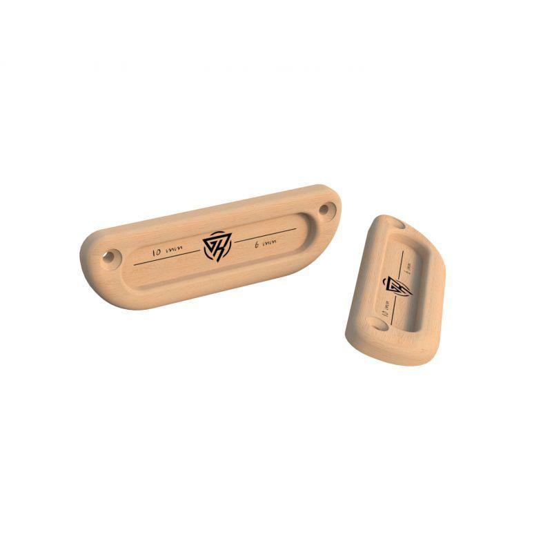 色々な厚みでフィンガーボードトレーニングをしたいけど、ハングボードを付けられるほどのスペースがない方におすすめです。同じシリーズで厚みの違う12mm/8mmセットは、10mm/6mmセットよりも中級者、これから指トレを始めたい方におすすめです。