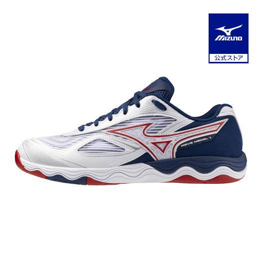 ミズノ公式 ウエーブメダル7 WIDE 卓球 ユニセックス ホワイト×レッド×ネイビー クリアランス