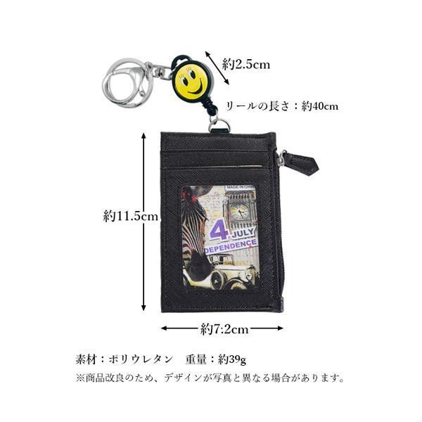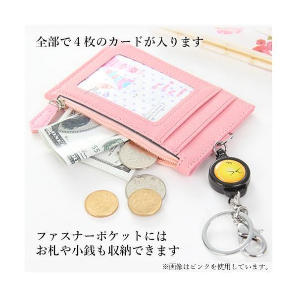 パスケース リール付き 定期入れ ICカードケース 子ども 小銭入れ 可愛い 通勤 通学 ブラック