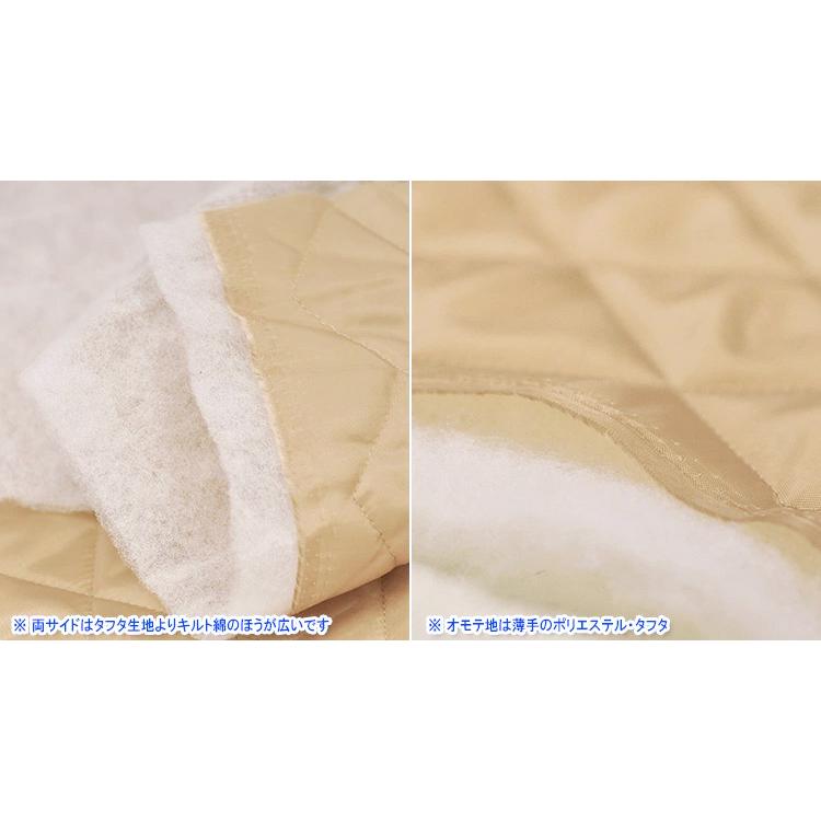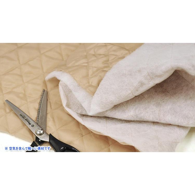コートやベスト、バッグの裏地に最適なキルト生地です。表地にすべらかな手触りのタフタを使用し、薄手のキルト綿とステッチで縫い合わせています。(裏地用タフタのため撥水加工はありません)薄手でも驚くほど軽くて暖かい!!防寒素材として優秀な素材です。