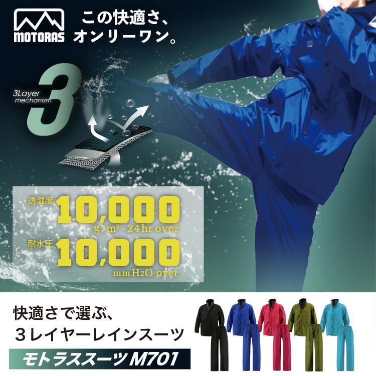 全天候に対応する快適素材「モトラス」の定番レインスーツです。