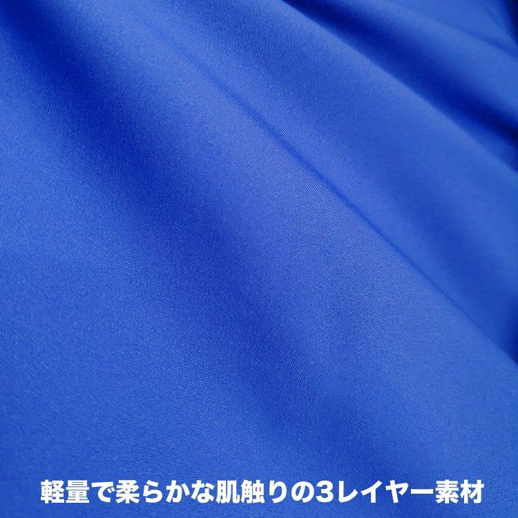 表地・中間フィルム・裏面トリコットの3層を一体化した「3層構造」や「3レイヤー」と呼ばれる生地は防水性、通気性、耐久性に優れ、スキーウエアや登山用アウターなどにも多く使用されています。
