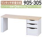 ワンタッチ折畳文机 W905 D305 H380 作業デスク 面対応の引出し文机 サイドテーブル 机 テーブル 事務 代引不可 テレワーク応援 個人宅配送費込B KES-90RD