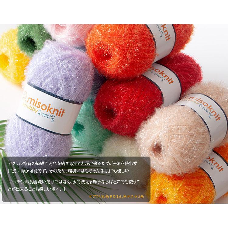 ( 毛糸 ) ◆2ページ目◆ エコ たわし 糸 Eco Scrubby │ 80g 66色 【 商用利用可 】 ※メール便規格外の為、宅急便のみの受付となります。■ 重さ: 80g(±5gぐらい誤差がございます。)■ 長さ: 170~180m■ 素材: ポリエステル100%■ 原産地:韓国 ■ 使用針:かぎ針4/0〜6/0号韓国発のキラキラファンシーヤーン大人気のエコたわしに最適な糸です。少量の洗剤でもきめ細かく豊かな泡立ち。毛羽部分も柔らかく優しく手になじみます。