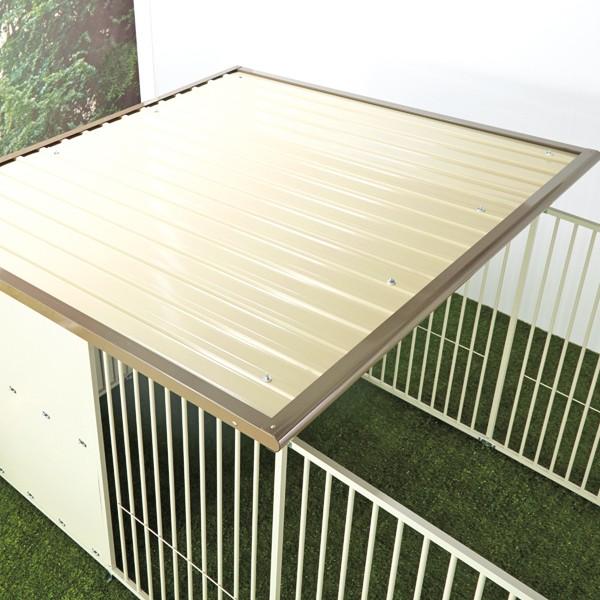 犬舎とサークルが一体化したくつろぎの空間。雨や日差しを避けられる、屋根付きスペースがあるサークルハウス。わんちゃんもゆったりくつろげます。格子をつなげて広くしたり、扉を増やしたり、屋根やパネルを取り外したり、リフォームも自由自在。家族が増えるなど、状況が変わっても長くお使いいただけます。扉、格子、パネルの取付位置は自由に変更できます。