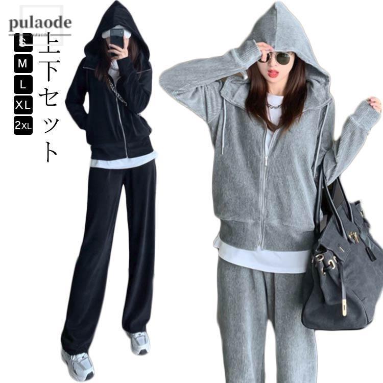 ワイドパンツ スエット レディース トレーナー パーカー セットアップ 体操 アウター スウェット スウェットパンツ 春 通勤 可愛い ジャージ 秋