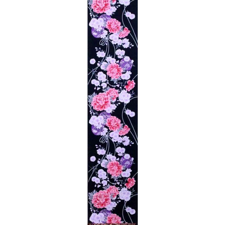 型番/11-14 46009203 No.83浴衣・反物・未仕立て品・綿100%・長さ12m・巾39cm・捺染(片面染め・銀彩加工)・平織り・耳ナシ(耳がほつれにくい特殊樹脂ガミング加工済み)・日本製。浴衣・洋装・のれん・インテリア・和雑貨・各種カバー類など手芸の材料にご利用下さい。地色は黒地です。お手元に届きまして、イメージと違うようでしたら、裁断される前に至急ご返送ください。