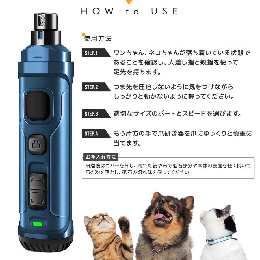 注)犬によって音への耐性や感度が違います。犬の爪研ぎは徐々に無理なく行うことが重要です。正しい使用方法を守り、愛犬の状態を見ながらお使いください。