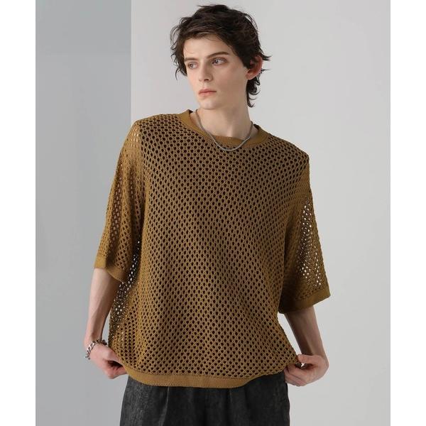 キーワード:セーター ニット メンズ クルーネック 半袖 無地