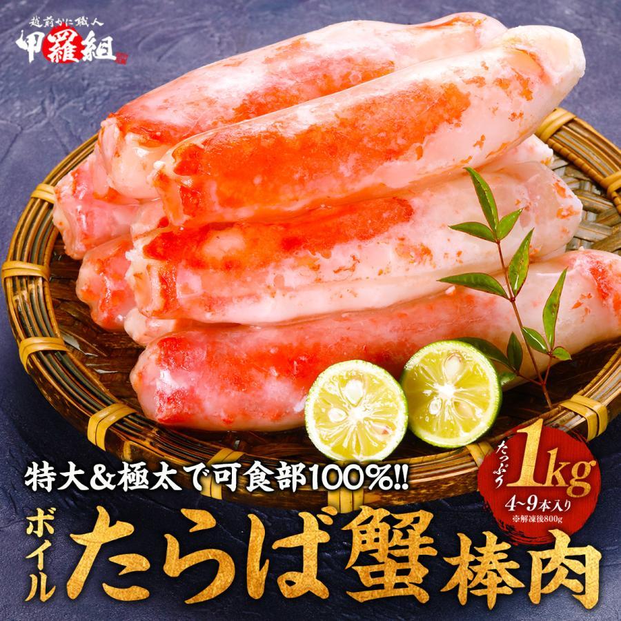 タラバガニの魅力はなんといっても、ズワイガニや毛ガニとは比べものにならない足の太さです。極寒の海で水揚げされた身入りの良いタラバガニを厳選し、船上で活〆ボイルし美味しさそのまま急速凍結した一級品です。今回は特別に太脚のみを厳選し、食べやすく殻をむいてお届け!自然解凍するだけでそのままお召し上がりいただけますが、個人的にお勧めなのが、バター焼き。ホットプレートやフライパンでサッと炙ると、その香ばしさが身にささり、グッと甘みが倍増します。大きさといい、味といいタラバガニの魅力を存分に楽しめる逸品です。ご贈答やお友達との忘年会や新年会、そしてご家族の集まりに是非このタラバガニをお試しください!