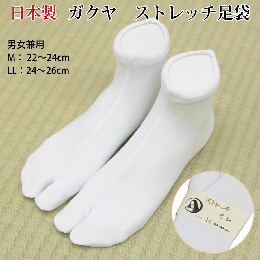 ガクヤのストレッチ足袋です。コハゼの無い口ゴム式ですので簡単に履けます。ストレッチ素材で伸びますので足の甲が高い方でもお使い頂けます。
