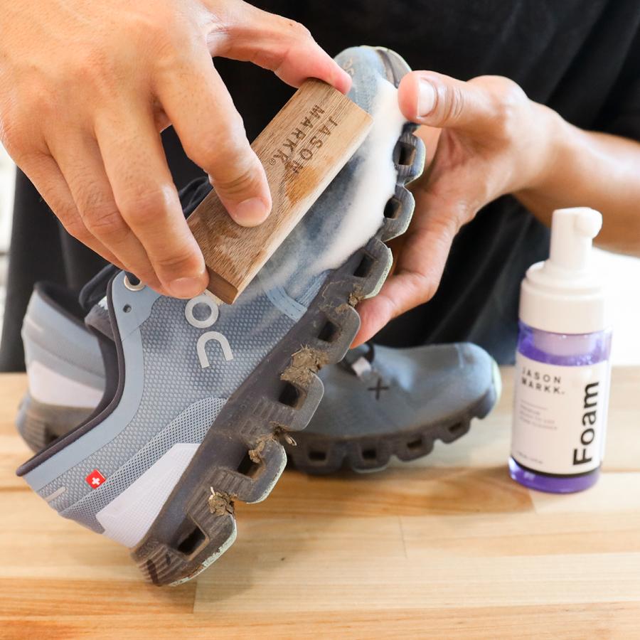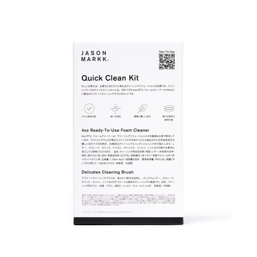 4oz RTUフォームクリーナーとデリケートクリーニングブラシのセットです。クリーニングソリューションと水を最適な比率で配合した天然由来成分の優しい泡タイプの洗剤が、効果的なクリーニングとコンディショニングを可能にします。必要なときにすぐに使えるクリーニングキットです。4oz Ready-To-Use Foam Cleaner4oz.RTUフォームクリーナーは、クリーニングソリューションと水を最適な比率で配合しています。ライトフレグランスが香るココナッツやその他オイルから抽出された天然由来成分の泡タイプクリーナーが、効果的なクリーニングとコンディショニングを可能にします。レザー、スウェード、ヌバック、キャンバス、コットン、ニットなどの様々な素材に安心してご使用いただけます。またRTUフォームクリーナーは洗剤成分をリニューアルし、より環境に優しい洗剤になりました。Delicates Cleaning Brushデリケートクリーニングブラシは、柔らかい豚毛を採用し、レザー、スウェード、ヌバック、コットン、ニットなどのデリケートな素材のクリーニングに最適です。