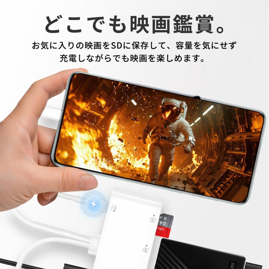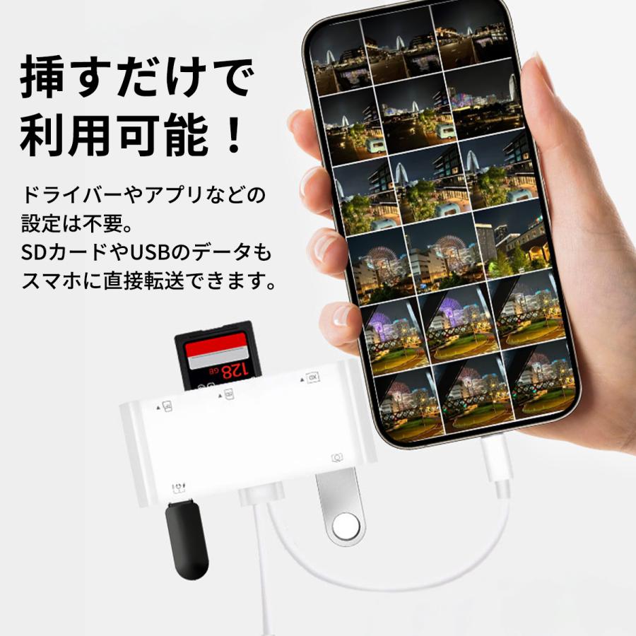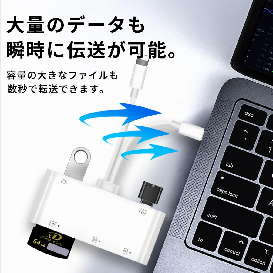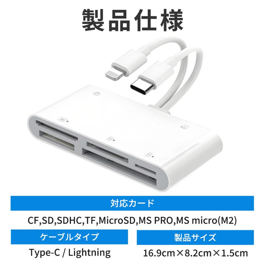 商品名:SDカードリーダー iPhone android スマホ 7in1 1TB対応 microSD USBメモリ XD TF MS CF Type-c ライトニング タイプC 相互転送 高速 カメラ