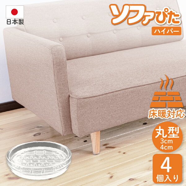 超強力 細足対応 ソファ 滑り止め【ソファぴた ハイパー 丸型 3・4cm 4個入 クリア 日本製】 床暖対応 防音対策 ズレ…