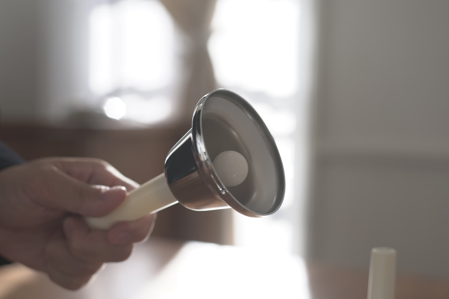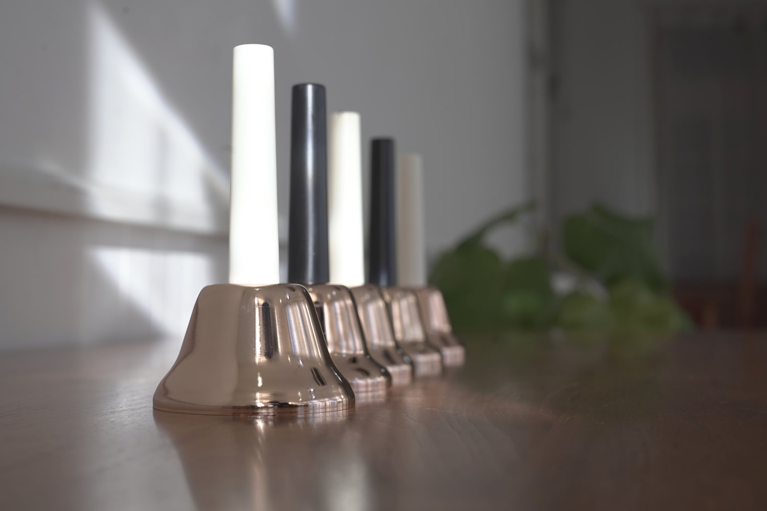 ハンドルを握りベルを振ることで音を鳴らすまさに一般的なハンドベルです。取っ手部先端の表記で、分かりやすく音階を確認することが出来ます。シルバータイプ、コッパータイプいずれも美しい鏡面仕上げとなっており高級感があります。