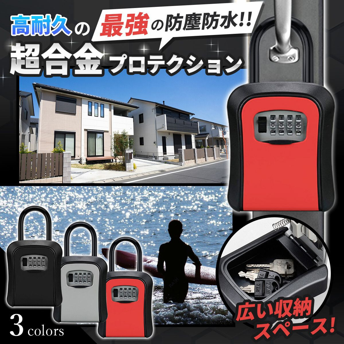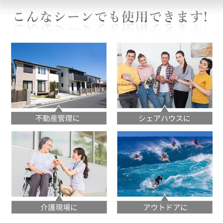 ・使用例:住宅展示場、倉庫、事務所、賃貸物件、シェアオフィス、店舗、会議室の鍵管理に最適で、屋内外問わず利用できます。