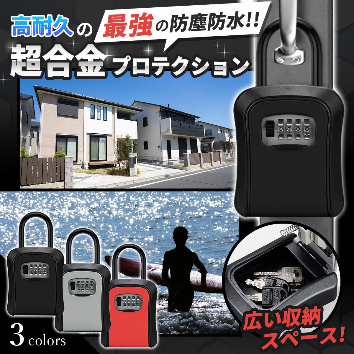 ・4桁のダイヤル式で、1万通りの暗証番号を設定可能です。