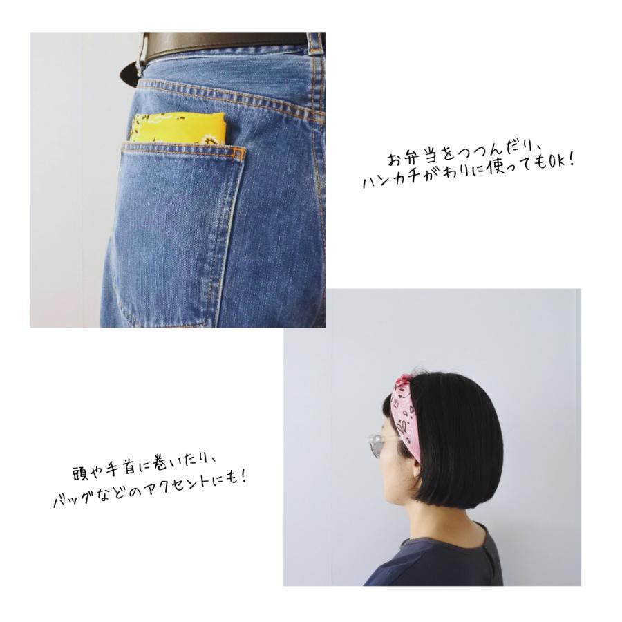 ハンカチとしてはもちろんのことお弁当を包むのにも大判なバンダナはぴったりです。