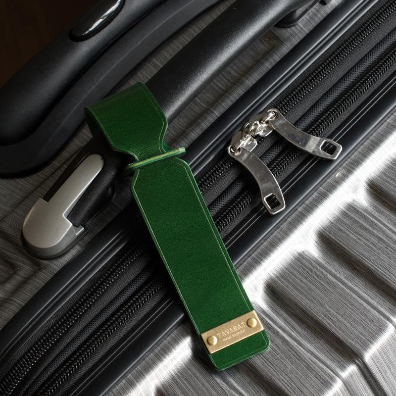 姫路ピットタンニンレザーを使用した本革ラゲージタグ。スーツケース等につけることで荷物受取の際の目印になります。