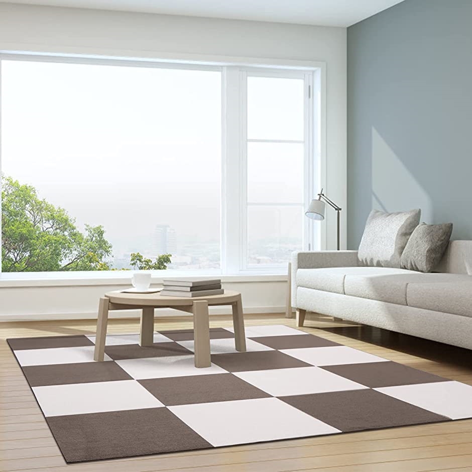 ・2、「ズレにくい、めくれない。」設置方法は簡単:シールを外す、乾燥で滑らかの平面でマットを置く、軽く圧力をかければ、設置完了です。自分の好みで家をイメチェンしましょう。裏面は特殊塗装を加工しました、圧力によって空気が抜けられ、真空状態になるので、子供やペットが走っても、掃除機をかけてもマットが全然ずれない。