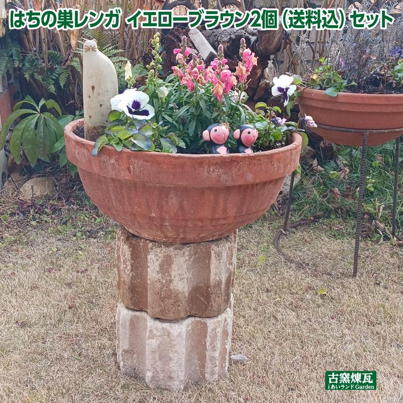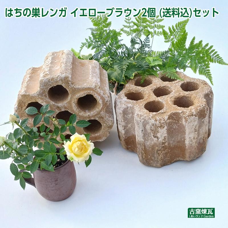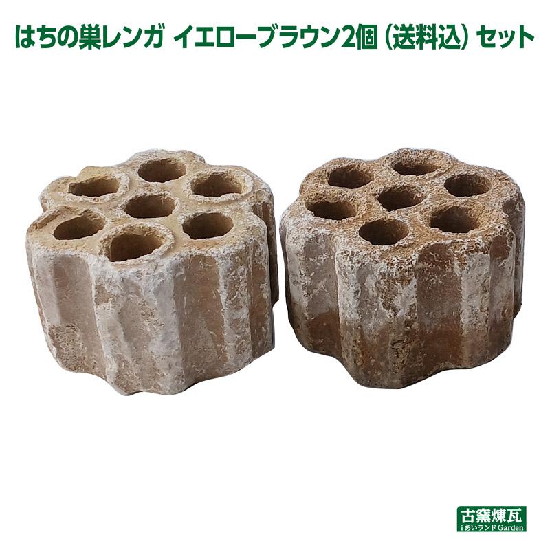 お庭のオブジェ 花壇のアクセントに!アンティークレンガ 「はちの巣レンガ イエローブラウン2個サイズ/1個:たて15cm×直径23cm、重量/1個:約6.7kg2個セット新色が入荷しました。