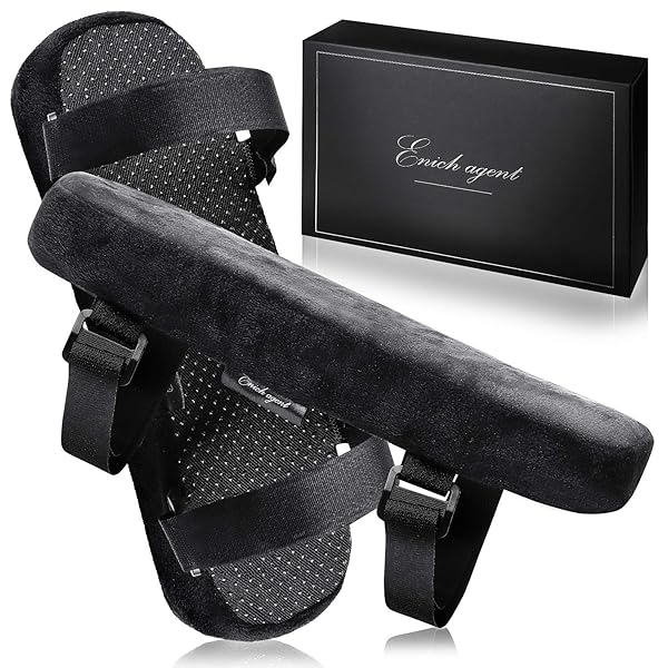 【ビジネス大賞】Enich agent ひじ置きクッション 両肘セット 低反発 ひじかけ アームレスト 椅子 日本語説明書付 ブラック (ブラック, M:254×75×30mm)