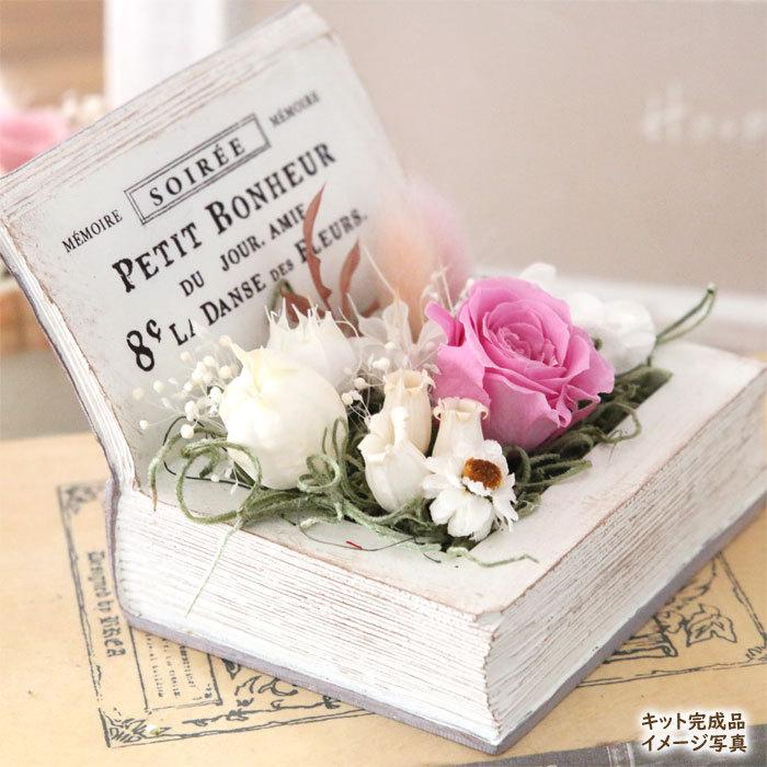 洋書風ポットにエレガントな花材をレイアウトしてみませんか?本商品は、お客様に手作りを楽しんでいただくフラワー制作キットです。花器と花材と作り方マニュアルがセットになっていますので、初心者さんでもフラワーアレンジメントを楽しんでいただける内容になっています!出来上がった作品は、お気に入りの場所に飾ったり、プチギフトとして贈り物にどうぞ♪