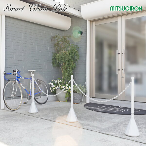 スマートチェーンポール ホワイトシルバー 3本セット【駐車場 ポール おしゃれ チェーンスタンド 駐車禁止 立入禁止 …