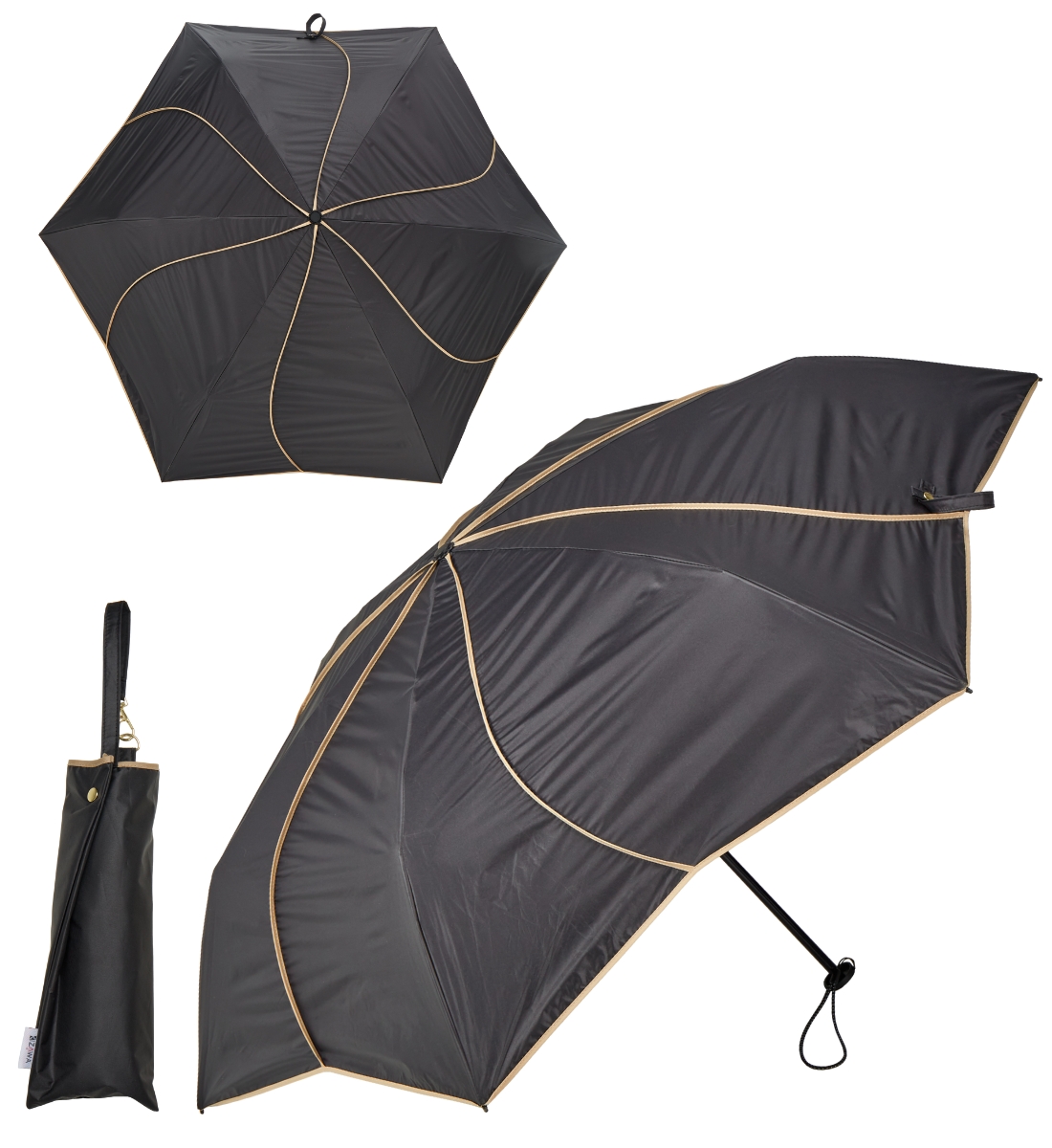 ひっくり返りにくい超軽量カーボン傘、完全遮光、遮熱・涼しい、晴雨兼用、超軽量、携帯便利、コンパクト、収納ポーチ付き