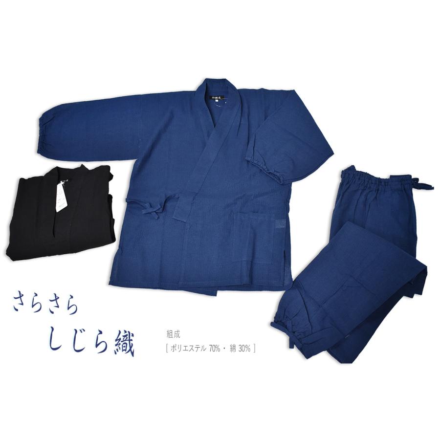 着心地の良い作務衣。シックな無地カラーです。 紳士向け上下組。ナチュラルタッチのしじら織でやさしい肌あたり。通気性のよい生地です。中透け感がありますのでご注意ください。・上衣… 前合わせひも留め・内ひも付き、前ポケット1、袖口ゴム入り- ・下衣カイ… ウエスト部2本ゴム入りボタン留めヒモ入り(同生地ひも使用)、前開きファスナー付き、両サイドポケット付き、足裾ひも入り(同生地ひも使用) ※入荷状況により写真と一部異なる場合がございます。※ギフト包装も承ります。ご希望の場合はご注文時に備考欄へご記入ください。包装紙のみは無料です。化粧箱入をご要望の場合は150円/個 頂戴します。 … /サイズ:メンズM:身長165-175cm、チェスト88-96cm、ウエスト76-84cm / メンズL:身長175-185cm、チェスト96-104cm、ウエスト84-94cm / メンズLL:身長175-185cm、チェスト104-112cm、ウエスト94-104cm/生地・素材:ポリエステル70%・綿30%/:made in China、