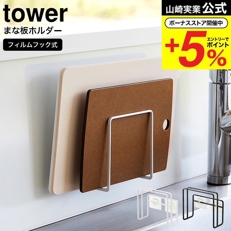 山崎実業 tower フィルムフックまな板ホルダー タワー キッチン 公式 ホワイト/ブラック 6364 6365 / 送料無料 まな板スタンド マナ板スタンド