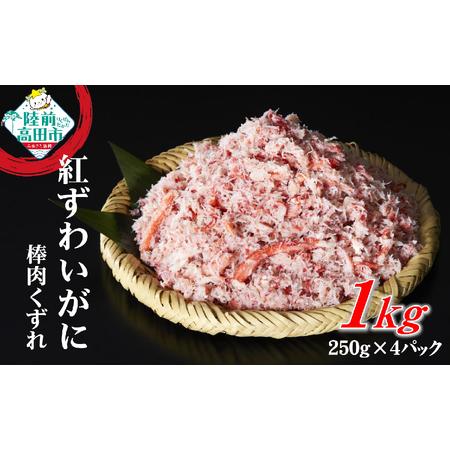 ■ 容量 【容量】 1kg(250g×4パック) ※原料の紅ずわいがには韓国産を使用しています。 【アレルギー】 かに 【賞味期限】 約90日(ラベルに記載)■ 配送について 決済から2週間程度で発送 タイプ:【冷凍】