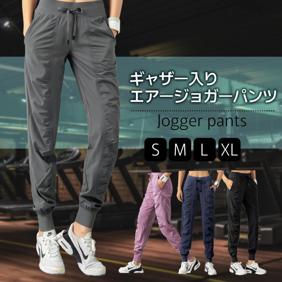 前面のギャザー感がアクセントになった、細すぎずすっきりデザインのエアージョガーパンツ♪