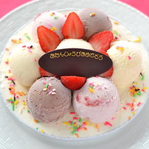 土台はストロベリーとバニラアイスが2層にサンドされ、上部のトッピングアイスはチョコレート、ストロベリー、バニラアイスが盛り付けられております。
