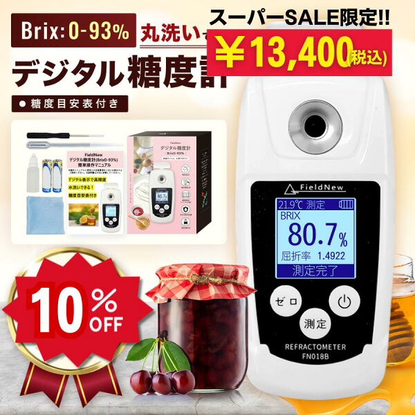 Brix 0〜93%まで測定可能で、ハチミツからジャム、さまざまな果物まで幅広く対応します。