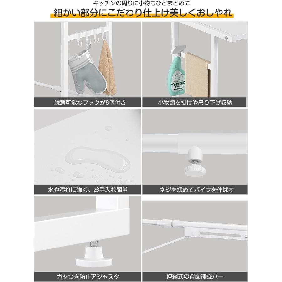 組み立て目安:女性一人15分。脱着可能なフック付きで小物などを掛けるのに便利!替えのゴミ袋を左右の伸縮パイプに収納できます。