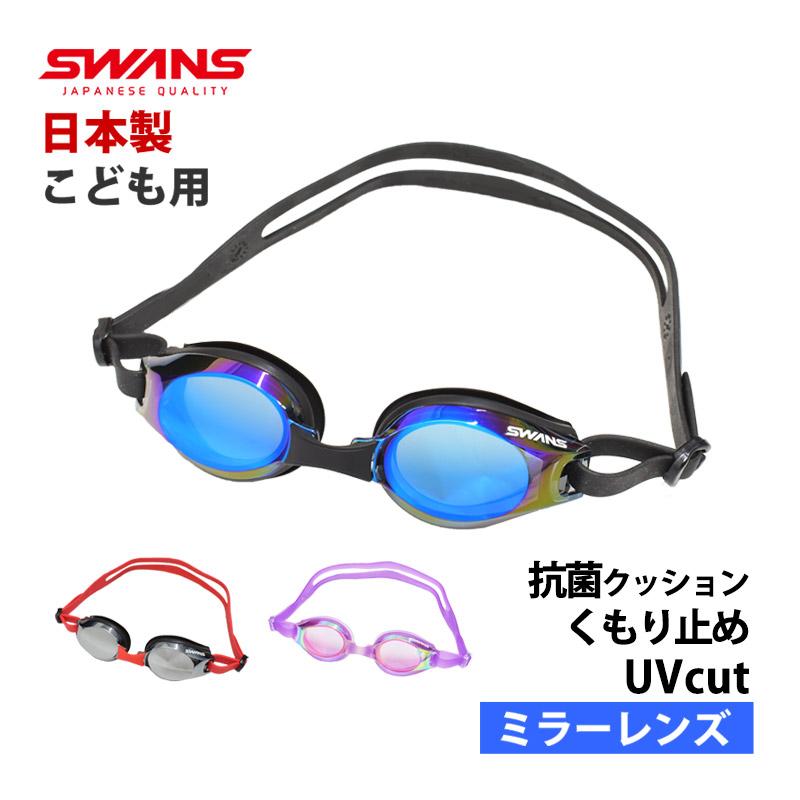 値下げ 送料無料 SWANS スワンズ ミラーゴーグル キッズ ミラーレンズ スイムゴーグル 子供用 水泳 くもり止め UVカット スイミング 日本製 SWRVJ-004M メール便