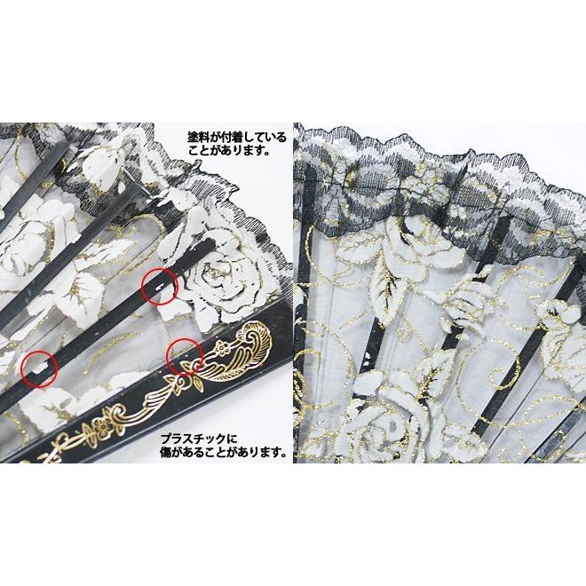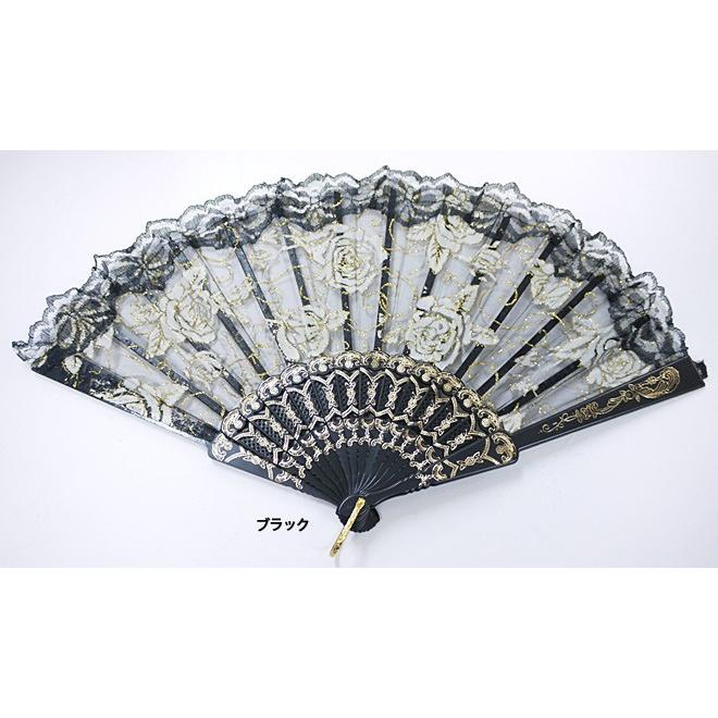 扇子芯はゴールドの模様、薔薇のプリント部分にもラメゴールドがあしらわれているので、