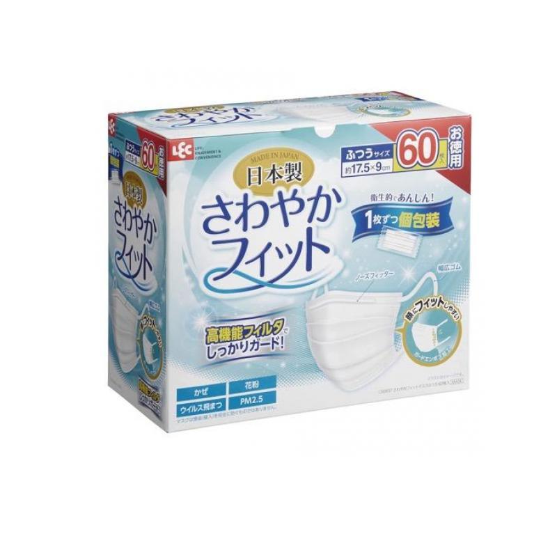 日本製 さわやかフィット 不織布マスク ふつうサイズ 60枚入 個包装 レック
