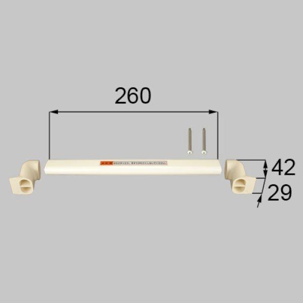 部品名 : バー付タオル掛けセット 長さ260ミリ商品コード : NETJK00034 (KEFAW992)色 : ホワイト W750用内容物 : 本体×1、ブラケットセット(LR)×1、ネジセット×1備考 : 材質:樹脂製(本体)、アルミ製(アルミバー)商品名 :浴室中折ドアSE型 800ステンレスP用 KEFAW992